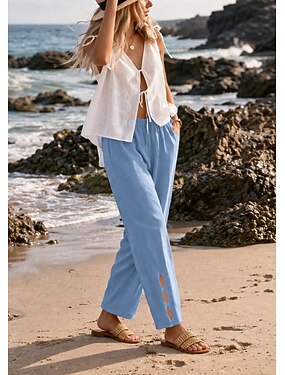 Per donna Finto cotone e lino Gamba larga Chinos Pantaloni Estivi Vacanza Streetwear Casual Lunghezza alla caviglia Vita media Tinta unica Semplice Coulisse Tasca Confortevole Traspirante