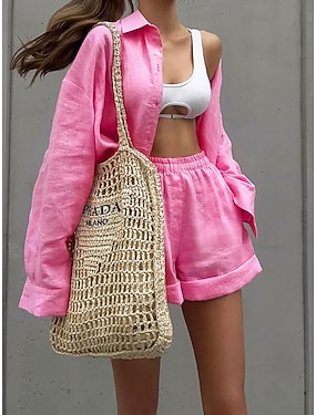Per donna Set di Pantaloncini Bolero Finto cotone e lino Manica Lunga Colletto a Camicia Semplice Arricciato Patchwork Moda Streetwear Casuale Quotidiano All'aperto Nero Bianco Rosa Estate