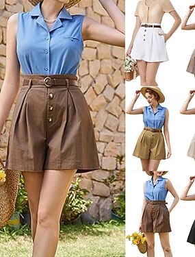 Da donna Set di Pantaloncini Finto cotone e lino Manica Lunga Colletto a Camicia Semplice Elegante Vacanza Vintage Casuale Quotidiano Vacanza Bianco Estate