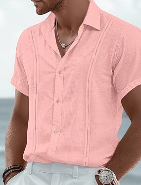 Per uomo Camicia Camicia di lino Camicia Guayabera Camicia Estiva Camicia da Spiaggia Camicia hawaiana estiva Tinta unica Vacanza Streetwear Bianco Rosa Azzurro Manica Corta Colletto Estate Primavera