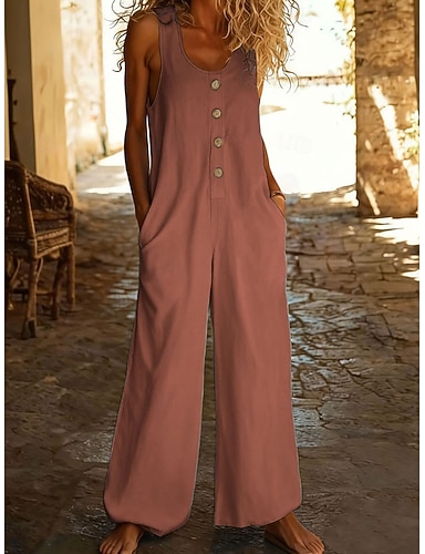Per donna Normale Tuta Attivo Tinta unica Senza Maniche Gamba larga Collo a U Tasca Bottoni Quotidiano Vacanza Vestibilità comoda Nero Vino Marrone chiaro Estate