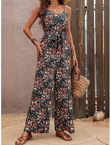 Per donna Normale Tuta Streetwear Floreale Senza Maniche Gamba larga Scollo a V Tasca Stampato Streetwear Quotidiano Vestibilità regolare Blu Viola Cachi Estate