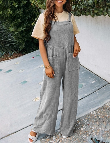 Per donna Normale Pantaloni in lino e cotone Attivo Tinta unica Manica Corta Gamba larga Scollo a V Tasca Con Cintura Quotidiano Vacanza Vestibilità regolare Cachi Grigio Estate