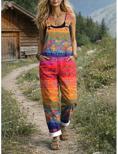 Per donna Salopette Attivo Floreale Senza Maniche Harem Coulisse con tasca Vacanza Streetwear Vestibilità comoda Giallo Rosso Blu Estate