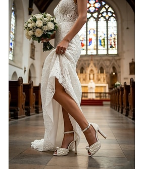 tacchi a spillo decorati con perle da donna - eleganti scarpe da sposa con cinturino alla caviglia e design a punta aperta