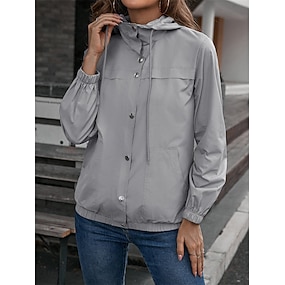 Per donna Giacca con Cappuccio Impermeabile Confortevole Tasca Bottoni Casual Semplice Vacanza Streetwear Casuale Abbigliamento quotidiano Monopetto Regolare Con Cappuccio Vestibilità regolare Manica