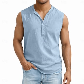 Per uomo Canotta Canottiera T-shirt tipo lino Senza Maniche Henley Estate Semplice Moda Classico Confortevole Bottoni Con Spacco Casuale Palestra Streetwear Nero Bianco Blu marino Maglietta Top per
