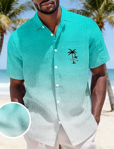 Per uomo Albero di Cocco Colore sfumato Piante Tropicali Camicie hawaiane Camicia stropicciata Camicia di Seersucker Manica Corta Hawaiano Vacanza al Mare Estate Primavera Collo ripiegato Morbido