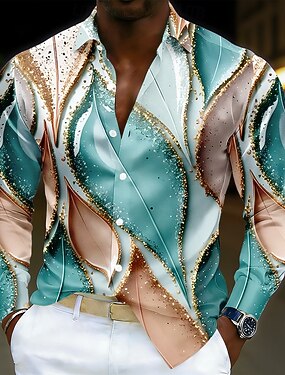 Per uomo Marmo Arte astratta Color-blocking Camicia Camicia in raso Camicia casual Manica Lunga Moda Casual Vacanza Abbigliamento Quotidiano Estate Primavera Collo ripiegato Stampa 3D Camicie con