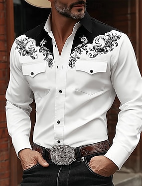 Per uomo Stampa Floreale Etnico Fiori Camicia Camicia Western Camicia da cowboy Manica Lunga Vintage Retrò Casuale All'aperto Abbigliamento da lavoro Primavera Autunno Collo ripiegato Due tasche