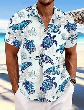 Per uomo Tartarughe Creature marine Camicia hawaiana Camicia con bottoni Manica corta Hawaiano Ricorrere Da mare Per eventi Abbigliamento mare Estate Primavera Collo ripiegabile camicie con colletto