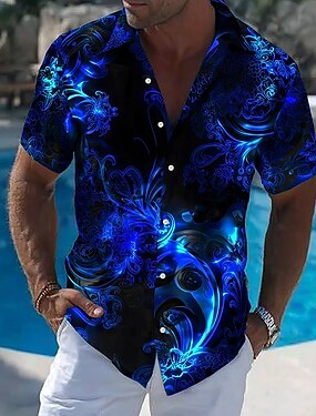 Per uomo Colore sfumato Camicia Camicia in raso Camicia elegante Manica Corta Moda Casual Quotidiano Vacanza Estate Primavera Collo ripiegato Camicie con Colletto Stampa 3D Camicie con bottoni Blu