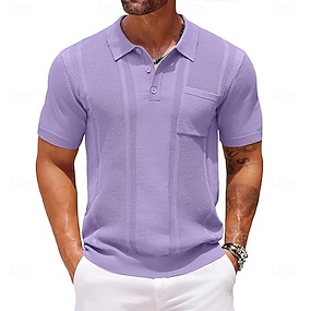 Per uomo Polo Testurizzato Casuale Lavoro Bavero Manica Corta Essenziale Moderno Semplice Leggero Bottoni Primavera & Estate Rosso Blu marino Viola Marrone Albicocca Polo