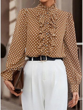 Per donna Camicia Blusa Volant Patchwork Bottoni A Pois Casual Manica Lunga Dolcevita Top Regolari Quotidiano Nero Marrone Autunno Inverno