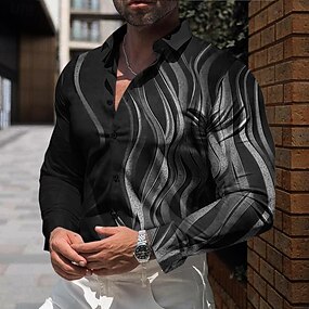 Per uomo Geometrica Linea Camicia con bottoni Camicie stampate Manica lunga Affari casual Formale Giornaliero Autunno Inverno Primavera estate Collo ripiegabile Camicie con colletto Bottoni Stampa