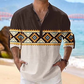 Per uomo Geometrico Azteco Tribale Camicia Camicia con Bottoni Maglia Henley Manica Lunga Vintage Retrò Casuale Vacanza Estate Primavera Collo alla coreana Colletto Mao Stampa 3D Camicia tipo lino