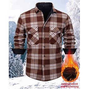Per uomo Giacca-camicia Giacca camicia Giacca invernale Plaid Vacanza Abbigliamento quotidiano Bianco Rosso Blu marino Azzurro cielo Manica Lunga Bavero Autunno Inverno Abbigliamento Tasca Frontale