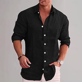 Per uomo Camicia in cotone e lino Semplice Vacanza Nero Bianco Vino Azzurro cielo Manica Lunga Bavero Abbigliamento