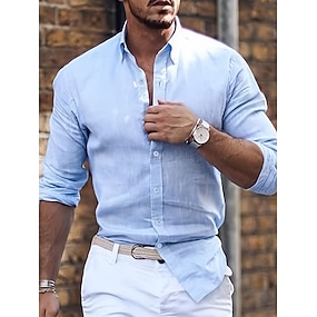Per uomo camicia di lino Camicia estiva Abbigliamento mare Maglietta informale Camicia con bottoni Liscio Da mare Curise Bianco Rosa Blu Manica lunga Bavero Primavera estate Abbigliamento Di base