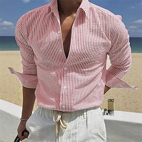 Per uomo Camicia Camicia Estiva Camicia casual Camicia da Spiaggia Camicia con Bottoni Nero Bianco Verde chiaro Rosso Blu Manica Lunga A righe Bavero Vacanza Camicia hawaiana Abbigliamento Poliestere