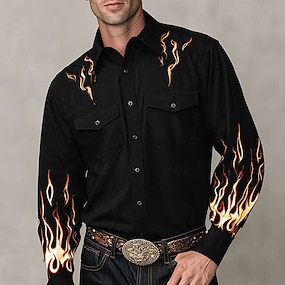Per uomo Fiamma Camicia Camicia Western Camicia da cowboy Manica Lunga Vintage Retrò Casuale All'aperto Abbigliamento da lavoro Primavera Autunno Collo ripiegato Due tasche anteriori Camicia tipo