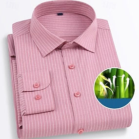 Per uomo Camicia Camicia Estiva Camicia casual Camicia con Bottoni Nero Rosa Blu Blu scuro Azzurro Manica Lunga A righe Bavero Vacanza Camicia hawaiana Bottonato Abbigliamento Fibra di bamboo Moda
