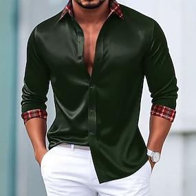 Per uomo Geometrico Griglia / Plaid Camicia Camicia in raso Camicia elegante Manica Lunga Vintage Retrò Vacanza Abbigliamento Quotidiano Estate Primavera Autunno Collo ripiegato Stampa 3D Camicie con