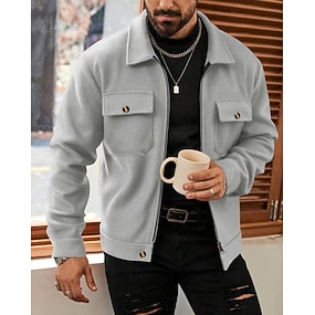 Per uomo Giacca da Esterno Giacca Sportiva Formale Casa Tasca Minimalista Primavera Autunno Tinta unica Attivo Neutro Colletto a Camicia Regolare Nero Borgogna Blu marino Cachi Grigio Giacca