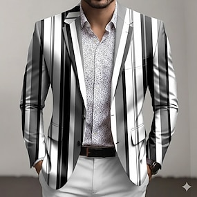 Per uomo A righe Giacca blazer Cappotto Confortevole Traspirante Artistico Casual Casuale Quotidiano Abbigliamento da sera Stampa 3D Bottoni Multi-tasche Primavera Autunno & Inverno Dentellato Manica