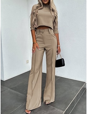 Per donna Streetwear Elegante Set di Pantaloni Manica Lunga Dolcevita Tinta unica Patchwork Quotidiano Abbigliamento da lavoro Nero Bianco Cachi Estate Vestibilità regolare