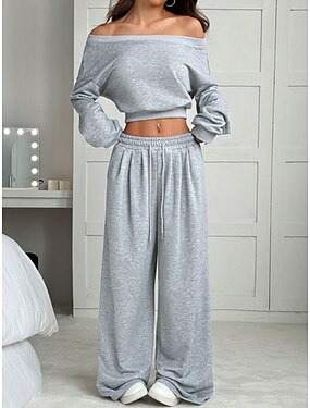 Per donna Set di Pantaloni Bolero Top Manica Lunga Girocollo Semplice Coulisse Elegante Attivo Streetwear Quotidiano All'aperto Vacanza Grigio scuro Nero Vino Autunno Vestibilità regolare
