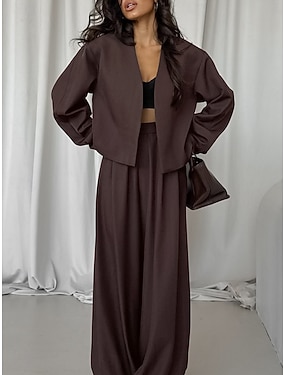 Per donna Set di Pantaloni Bolero Top Manica Lunga Colletto a Camicia Tinta unica Cerniera Moda Streetwear Casuale Quotidiano All'aperto Nero Vino Cammello Primavera Taglia piccola