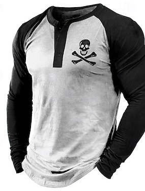 Per uomo Halloween Teschio Stampe Grafiche Maglia Henley Maglia cool Camicia a Maniche Lunghe Manica Lunga Stampa a caldo Designer Essenziale Moderno Contemporaneo Vacanza Streetwear Uscire Primavera