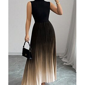 Per donna Abito Midi Abito in Raso Abito da Cocktail Abito arricciato Moda Moderno All'aperto Vacanza Uscire Vestibilità regolare Ombre Senza Maniche Girocollo Blu Fucsia Marrone Grigio Primavera