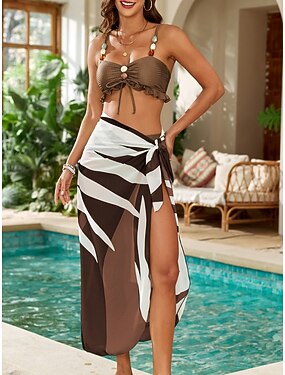 Costume da bagno bikini tre pezzi da donna Gonna da spiaggia Pantaloni Corti Slim Senza schienale Abbigliamento da spiaggia in vacanza Collo a V Senza maniche