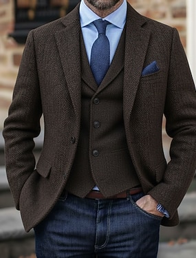 Per uomo Blazer in Tweed Colletto ad incastro Retrò Vintage Spina di Pesce Blazer Blu marino Marrone Grigio scuro Vestibilità standard Monopetto a tre bottoni