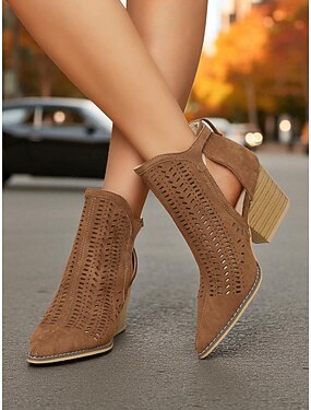 Per donna Stivali Scarpe Vintage Ufficio Lavoro Quotidiano Tronchetti Fibbia Tacco a Blocco Punta a Punta Elegante Bohemien Vintage Camminata Finta pelle scamosciata Cerniera Nero Marrone