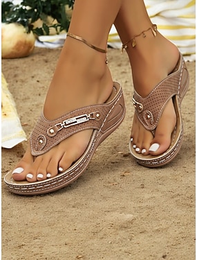 sandali infradito con zeppa e plateau da donna, sandali estivi da passeggio in spiaggia con plateau imbottito