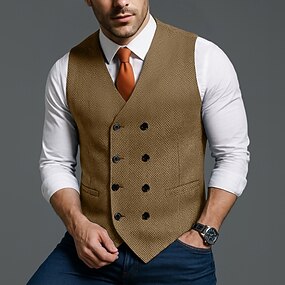Per uomo Gilet Formale Vacanza Quotidiano Ricevimento di matrimonio Moda Classico Primavera Autunno Tasca Bottoni Poliestere Confortevole Semplice Spina di Pesce Doppiopetto Scollo a V Vestibilit
