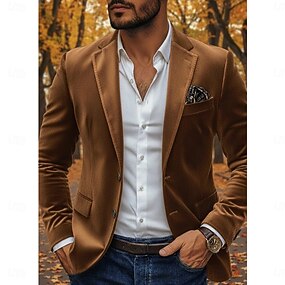 Per uomo Giacca blazer Colletto ad incastro Moda Classico Casual Tinta unita Blazer di velluto Verde militare Nero Marrone Vestibilità standard Monopetto Due Bottoni