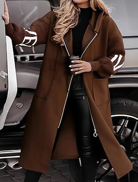 Per donna Cappotto Invernale Cappotto Caldo Confortevole Patchwork Cerniera Tasca Moda Casual Lettera Vacanza Streetwear Casuale Abbigliamento quotidiano Lungo Con Cappuccio Vestibilità regolare