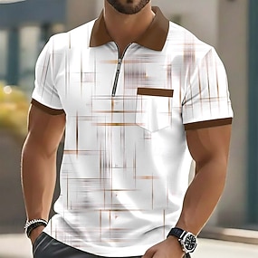 Per uomo A righe Polo con zip Maglia da golf Manica Corta Magliette polo Camicie con Colletto Business Casual Abbigliamento da lavoro Abbigliamento Formale Abbigliamento da festa Stampa 3D Polo con