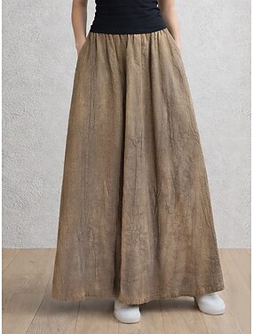 Gonne in lino da donna al 70%, gonne in lino di cotone, gonne lunghe casual a vita media, semplici, ricamate, con tasche, anelastiche, per tutti i giorni, per le vacanze, albicocca, marrone chiaro, primavera, autunno