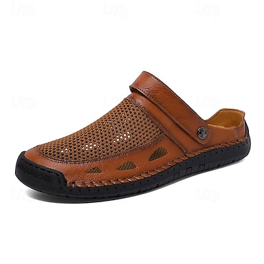sandali slip-on traforati marroni da uomo: traspiranti, comodi, leggeri, perfetti per l'estate, per l'abbigliamento casual e per l'outdoor