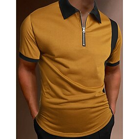 Per uomo Polo con zip POLO Informale Per eventi Bavero Chiusura lampo quarto Manica corta Di tendenza Essenziale Color Block Chiusura lampo quarto Estate Standard Nero Rosso Marrone Nero chiaro Polo