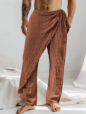 Per uomo Pantaloni di lino Pantaloni Pantaloni estivi Pantaloni larghi Pantaloni stile harem A cordoncino Vita elastica Liscio Comfort Traspirante Lunghezza intera Yoga Giornaliero Per eventi Di