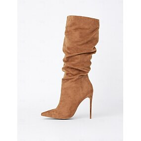stivali da donna scamosciati marroni a metà polpaccio - eleganti tacchi a spillo con punta affilata, perfetti per outfit casual e da festa autunnali