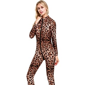 Tute Zentai Costume Cosplay Catsuit Ragazza Motociclista Costume di Carnevale Tuta Intera Per donna Leopardo Costume Sexy Halloween Leopardato Costume per Carnevale Mascherata Adulti