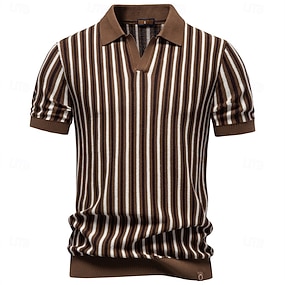 Per uomo Polo Polo a maglia intrecciata Casuale Streetwear Bavero Manica Corta Essenziale Moderno Strisce verticali Leggero Bottoni Estate Primavera Vestibilità regolare Bianco Marrone Polo