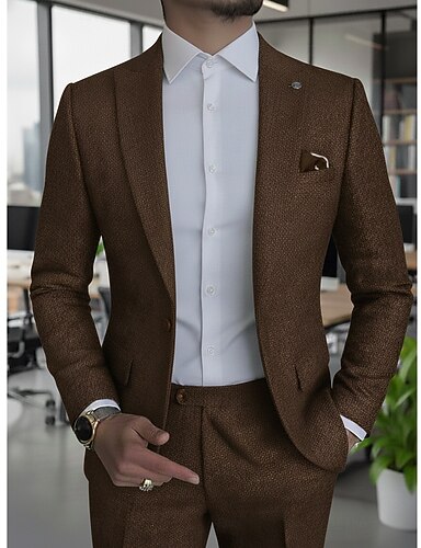 Uomo Smoking Abiti da lavoro Casuale Feste Marrone Autunno Tuta Bavero classico Formale Tinta unita Vestibilità aderente 3 pezzi Monopetto Due Bottoni